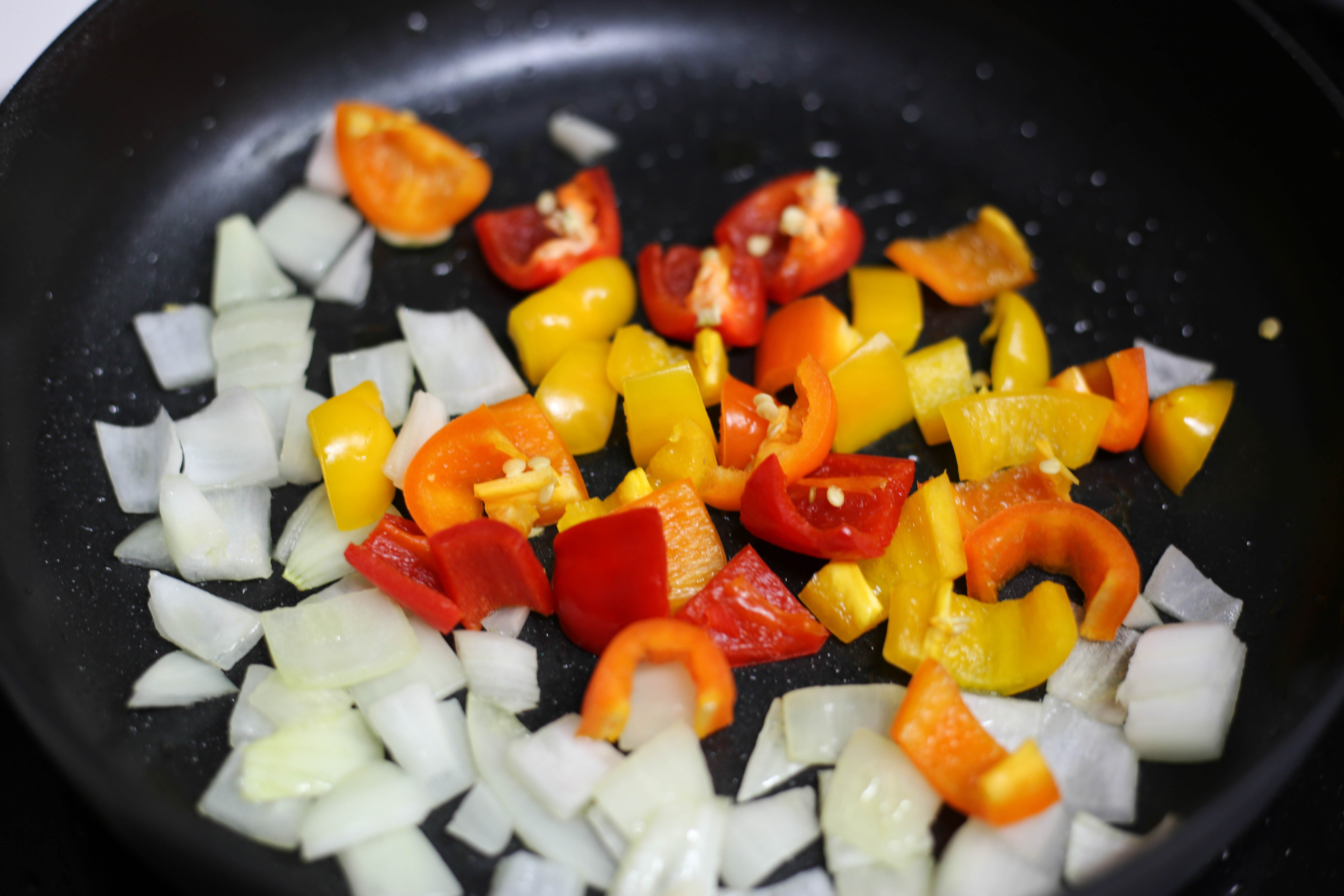 3. 손질한 채소를 기름을 두른 팬에서 볶는다.