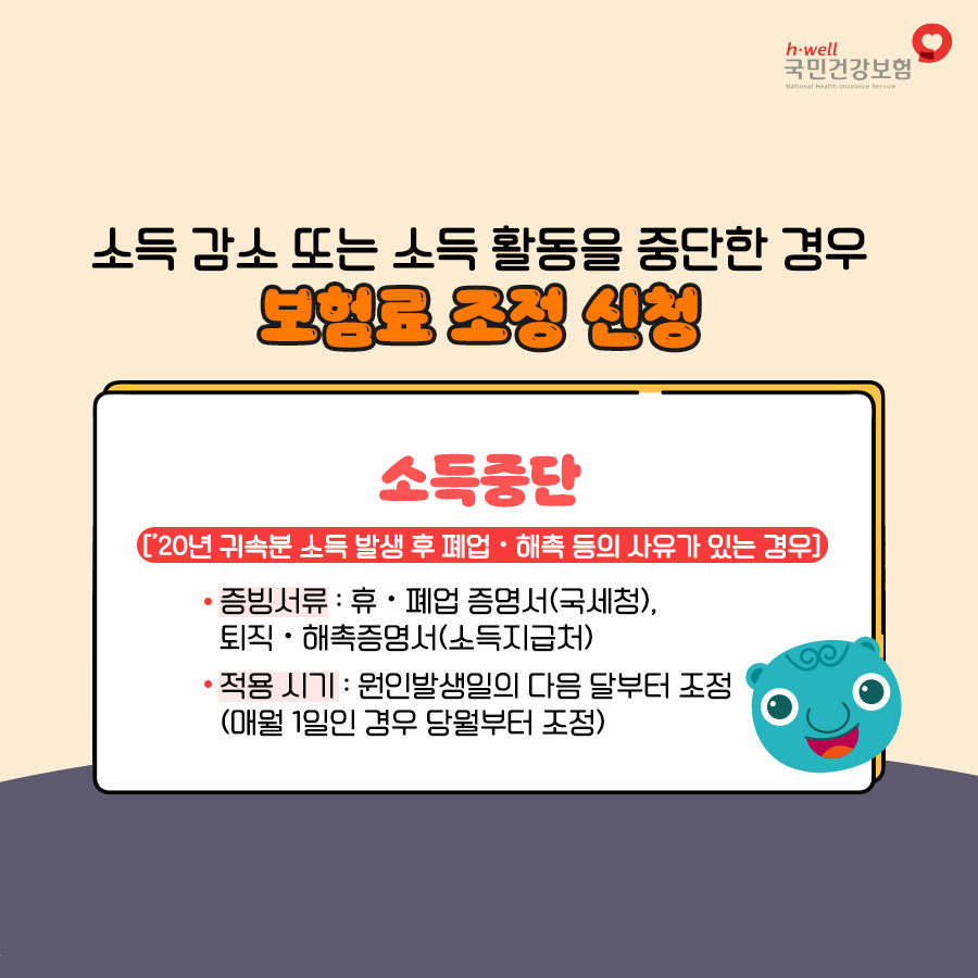 소득이 감소하거나 소득 활동을 중단한 경우에는