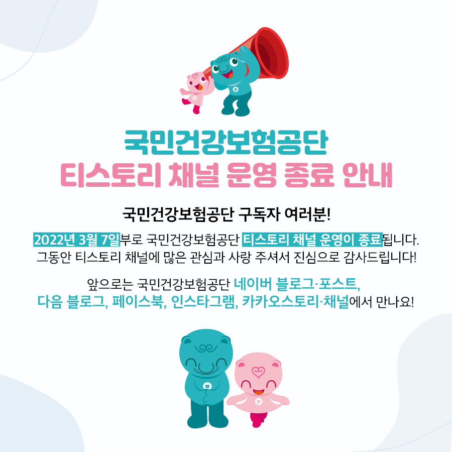 2022년 3월 7일부로 국민건강보험공단 티스토리 채널 운영이 종료됩니다.